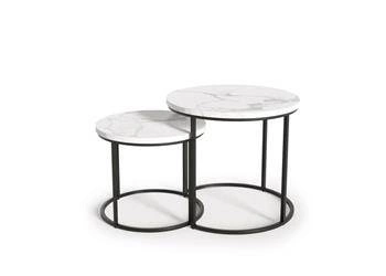 Najlepsza cenaZestaw 2 okrągłych stolików kawowych Tabarka biały marmur loft nowoczesny do salonu Intesi
