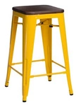 Hoker Paris Wood 75 cm żółty industrialny stołek barowy z drewna sosnowego do wyspy kuchennej
