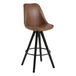 WyprzedażOstatnie sztukiHoker Dima Brandy z oparciem do kuchni i wyspy, tapicerowany skórą ekologiczną na drewnianych nogach
