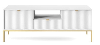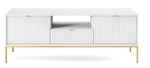 Szafka RTV Seda biała z frezowanym frontem i złotymi nogami nowoczesna do salonu 168 cm