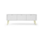 Szafka RTV Seda biała z frezowanym frontem i złotymi nogami nowoczesna do salonu 168 cm