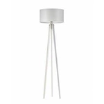 Lampa stojąca do salonu Miami trójnóg drewniana z abażurem szarym i białą podstawą Lysne