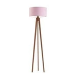 Najlepsza cenaLampa stojąca do salonu Miami trójnóg glamour z jasnoróżowym abażurem i mahoniową podstawą