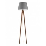Najlepsza cenaLampa stojąca do salonu Aruba Lysne nowoczesna drewniana trójnóg z jasnoszarym abażurem