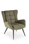 Fotel uszak Wallace do salonu nowoczesny oliwkowy tapicerowany z podłokietnikami Intesi