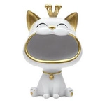 Figurka dekoracyjna kot glamour Intesi biało-złota z miejscem na drobiazgi do salonu