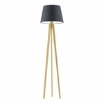 Lampa stojąca do salonu Curacao nowoczesna z abażurem grafitowym i dębowym trójnogiem Lysne