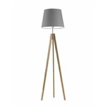 Najlepsza cenaLampa stojąca do salonu Aruba szara z abażurem drewniana trójnóg nowoczesna Lysne 149 cm