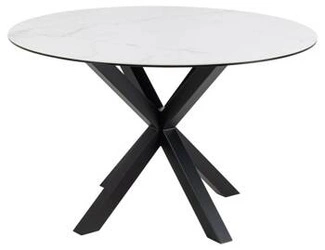 Oferta specjalnaStół okrągły do jadalni Heaven Akranes 120 cm biały marmur nowoczesny na czarnych nogach