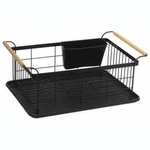 Najlepsza cenaOciekacz do naczyń czarny z drewnianym uchwytem na blat 43 cm z pojemnikiem na sztućce 5five