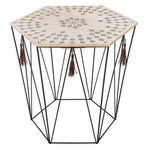 Najlepsza cenaStolik kawowy Kumi ośmiokątny drewniany z frędzlami boho ze schowkiem do salonu Atmosphera