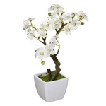Sztuczne drzewko Bonsai kwitnąca Wiśnia Atmosphera biało-brązowe do salonu 26 cm