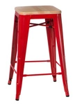Najlepsza cenaHoker Paris Wood 75 cm czerwony industrialny metalowy z drewnianym siedziskiem do wyspy kuchennej
