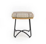 Stolik kawowy Surabaya kwadratowy boho rattanowy z blatem szklanym czarny do salonu 51x51 cm