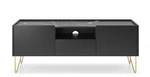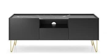 Najlepsza cenaSzafka RTV czarna Marbren 144 cm nowoczesna z szufladą i złotymi nogami do salonu Intesi