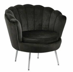 Fotel kubełkowy Korab VIC czarny welur glamour do salonu muszelka srebrne nogi Intesi