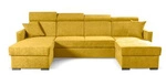Narożnik z funkcją spania Mils U musztardowy nowoczesny do salonu z pojemnikiem