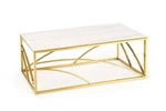 Stolik kawowy Taman prostokątny szklany biały marmur złoty glamour do salonu Intesi 120x60