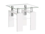 Stolik kawowy Darby kwadratowy szklany biały z półką nowoczesny 60x60 cm do salonu