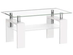 Stolik kawowy Ziba szklany prostokątny biały z półką nowoczesny do salonu 110x60 cm