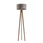 Najlepsza cenaLampa stojąca do salonu glamour MIAMI trójnóg z abażurem szary melanż drewno mahoń personalizowana