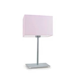 Najlepsza cenaLampka nocna AMALFI nowoczesna z jasnoróżowym abażurem i srebrnym stelażem do sypialni