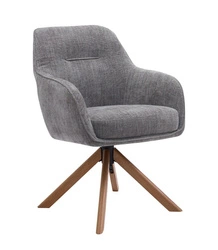NowośćFotel obrotowy Merys do salonu nowoczesny grafitowy z dębową podstawą UNIQUE