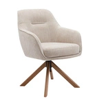 NowośćFotel obrotowy Lova beżowy do salonu nowoczesny z podłokietnikami na dębowych nogach