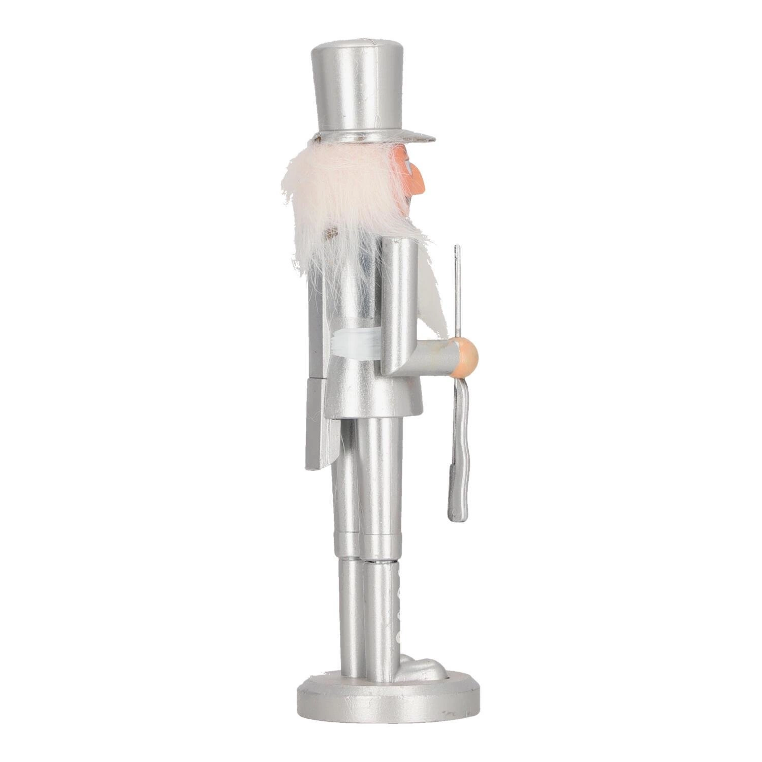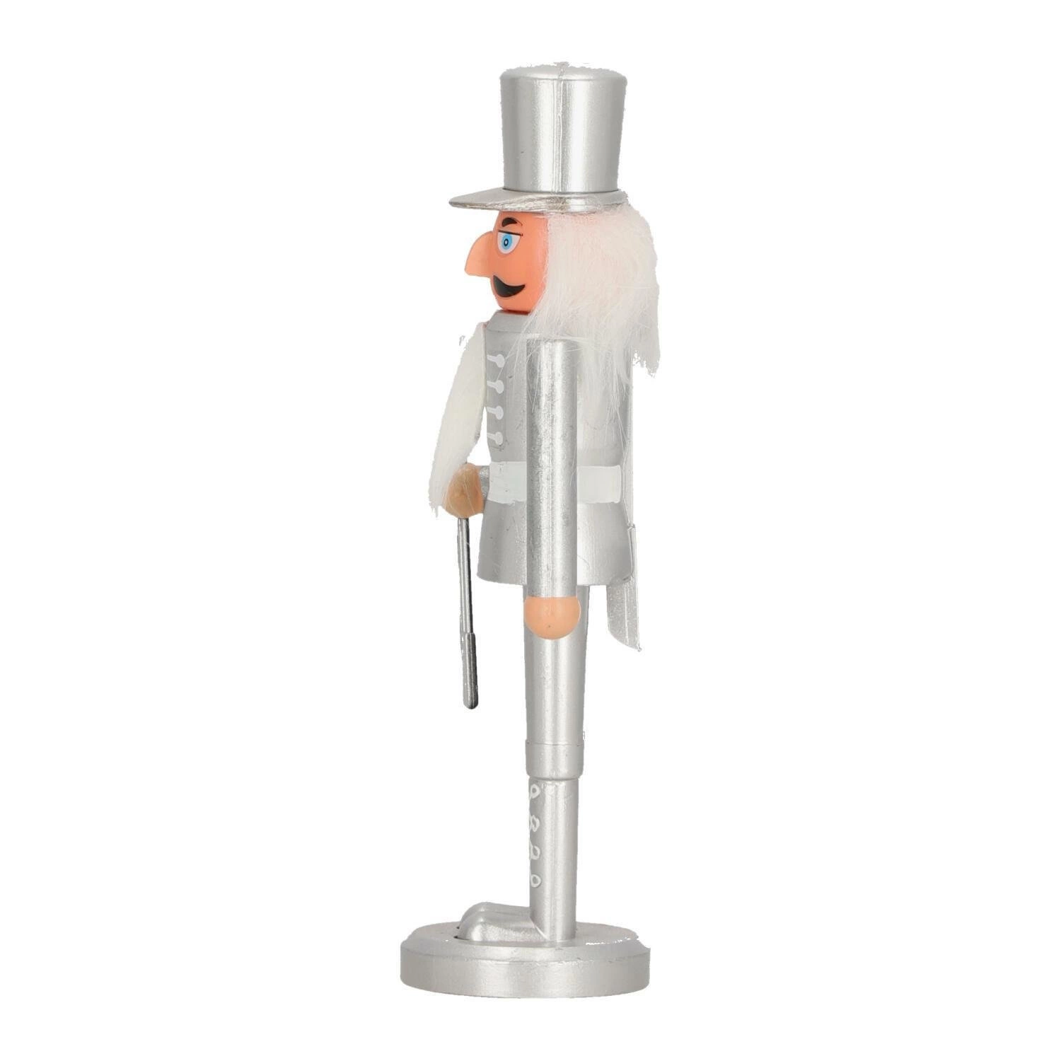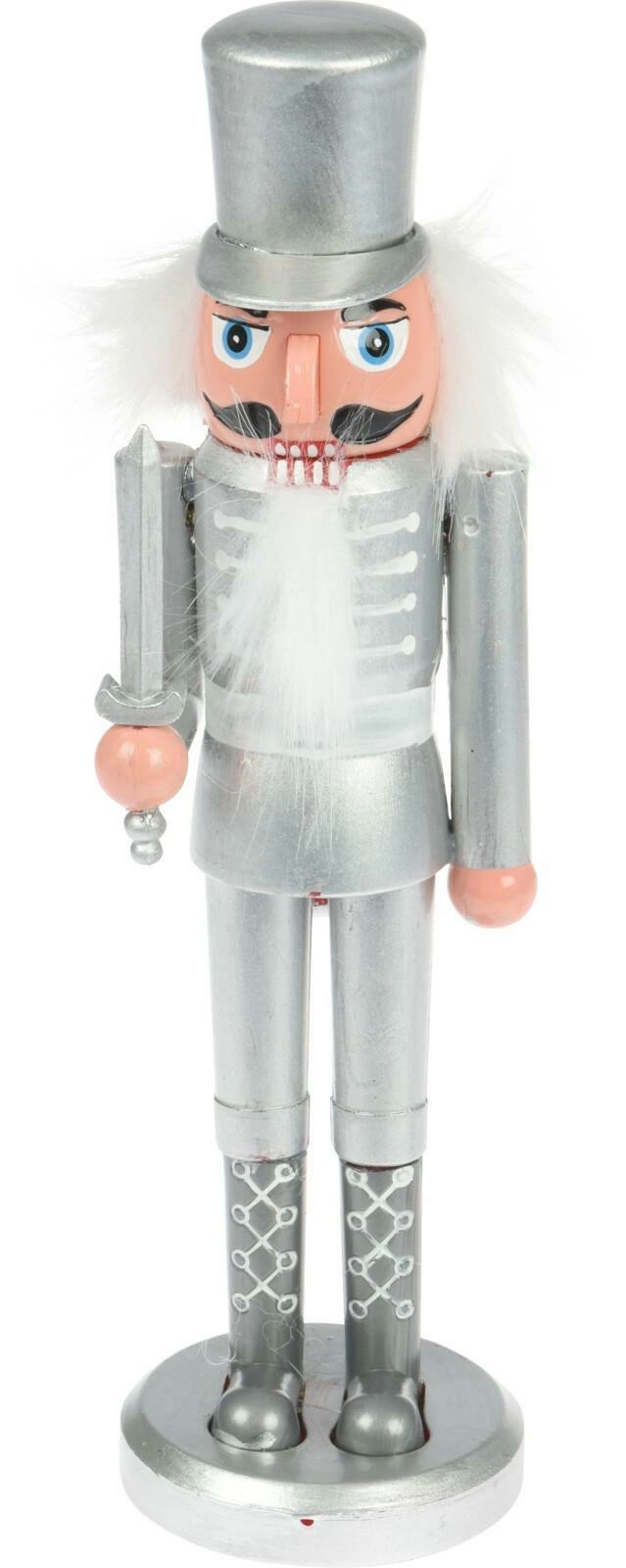 Dekoracja dziadek do orzechów w srebrnym kolorze ze srebrnymi akcentami to hit każdych świąt bożego narodzenia. Sympatyczny żołnierz o puchatych białych włosach skradnie serce domowników. Biało srebrny dziadek do orzechów dopełni świąteczną aranżację. Duży, bo aż 28-centymetrowy, dziadek został zrobiony ze sztucznego tworzywa, dzięki czemu jest wytrzymalszy od jego drewnianych odpowiedników. Dziadek posiada okrągłą podstawkę, dzięki której stoi stabilnie, więc śmiało możemy nim ozdobić stół na świąteczny obiad lub kominek.