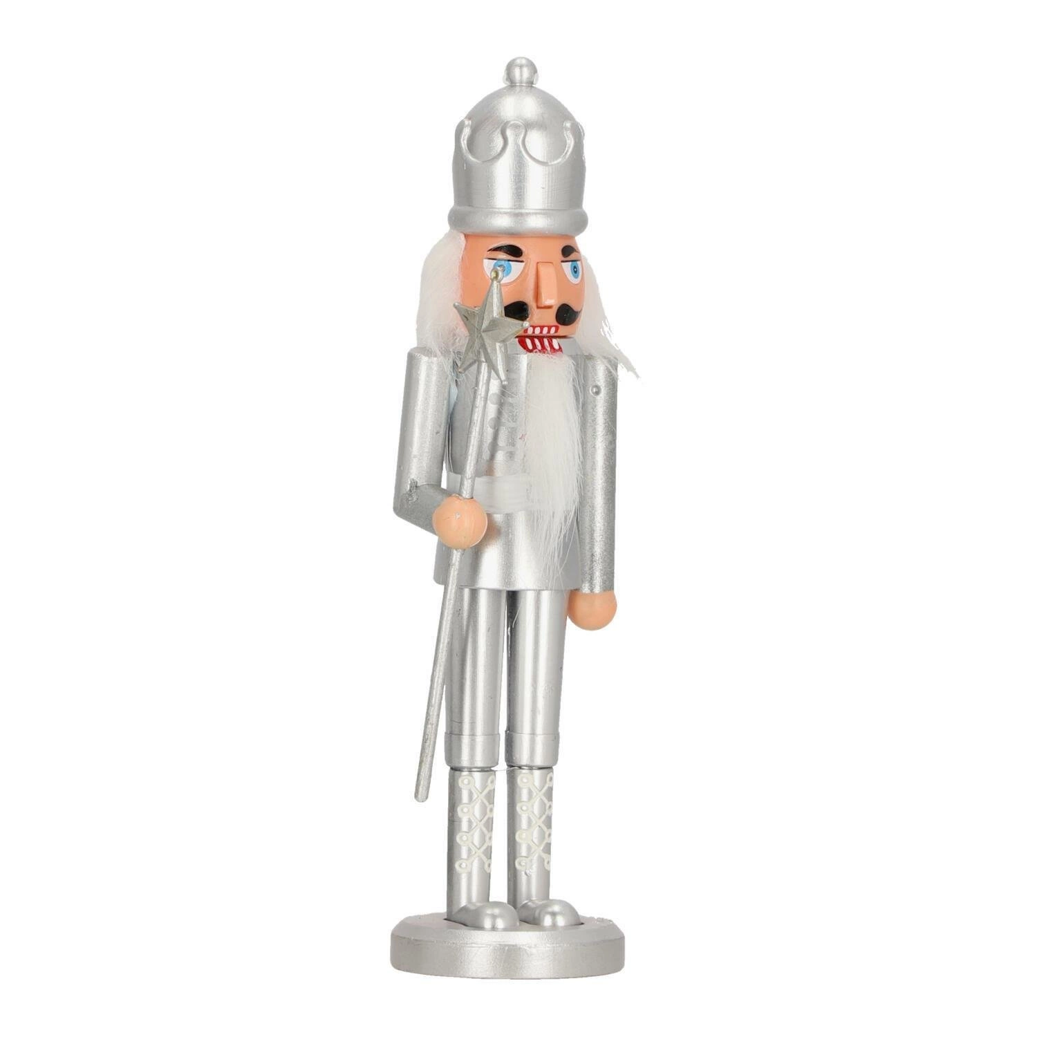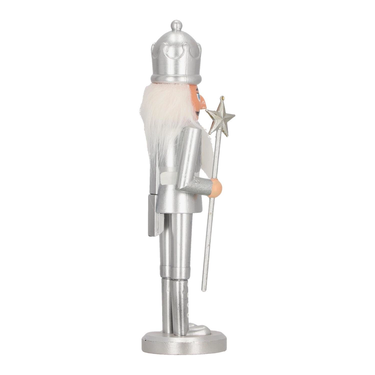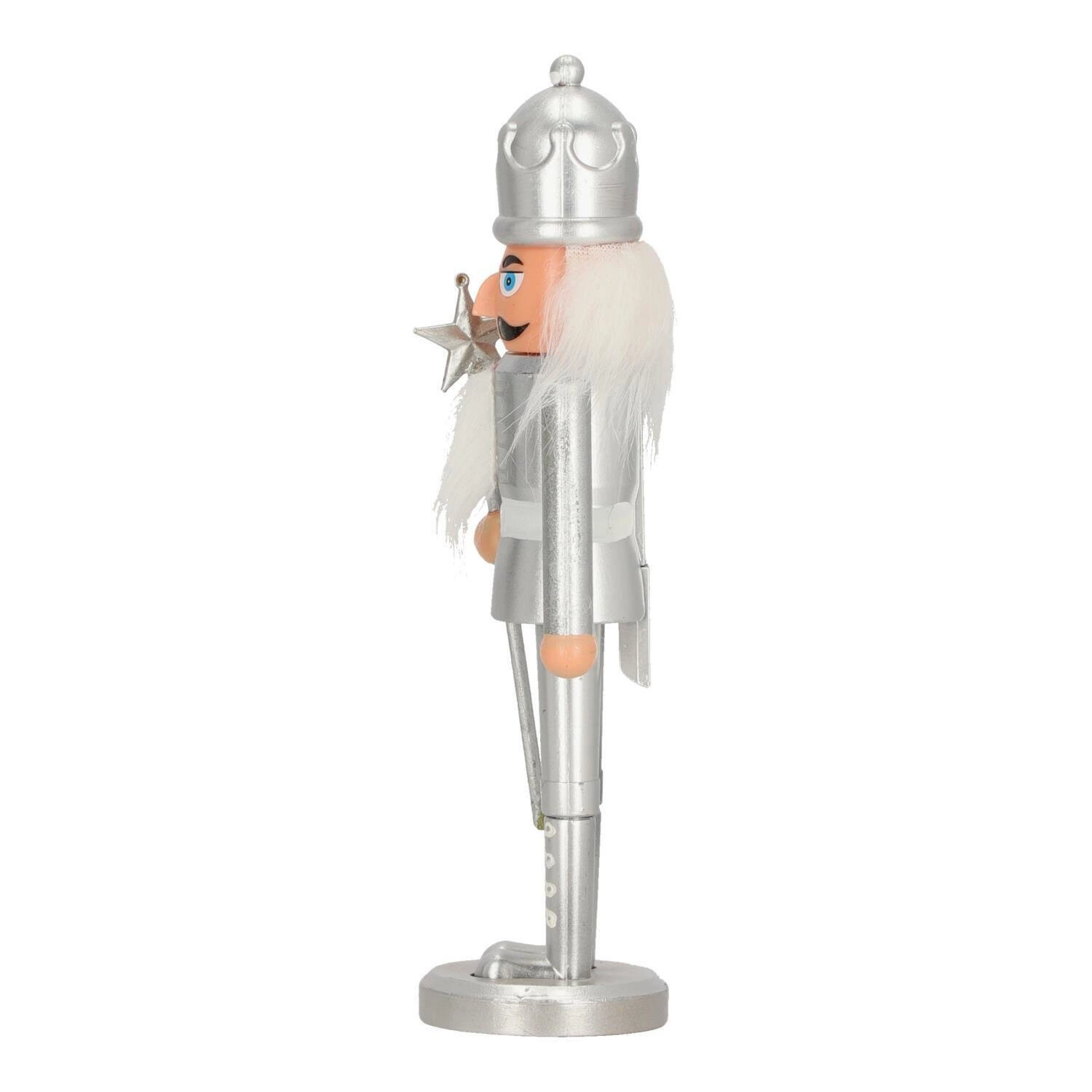 Dekoracja dziadek do orzechów w srebrnym kolorze ze srebrnymi akcentami to hit każdych świąt bożego narodzenia. Sympatyczny żołnierz o puchatych białych włosach skradnie serce domowników. Biało srebrny dziadek do orzechów dopełni świąteczną aranżację. Duży, bo aż 28-centymetrowy, dziadek został zrobiony ze sztucznego tworzywa, dzięki czemu jest wytrzymalszy od jego drewnianych odpowiedników. Dziadek posiada okrągłą podstawkę, dzięki której stoi stabilnie, więc śmiało możemy nim ozdobić stół na świąteczny obiad lub kominek.