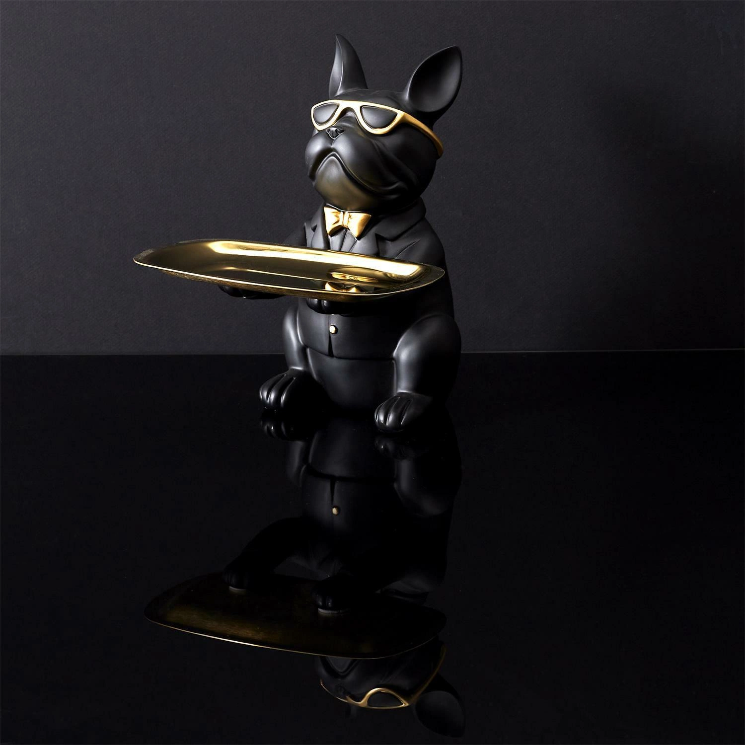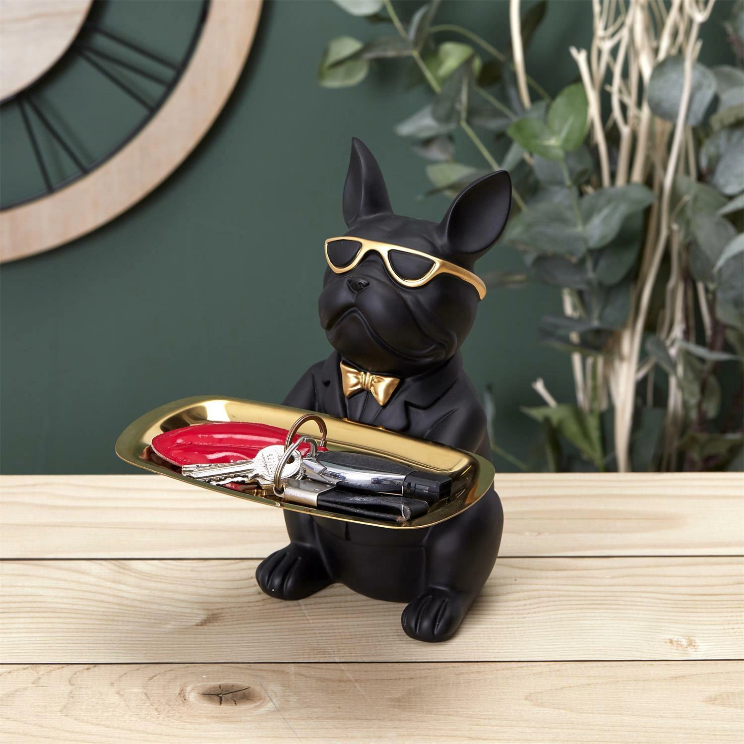 Figurka ozdobna buldog organizer czarny ze złotą tacą od Intesi to także świetny pomysł na prezent dla miłośników nietuzinkowych dodatków do domu. Doskonale sprawdzi się jako upominek na parapetówkę, urodziny czy święta. Uniwersalny rozmiar (23,5×20×19 cm) sprawia, że bez trudu znajdziesz dla niej miejsce na półce, komodzie czy w przedpokoju.