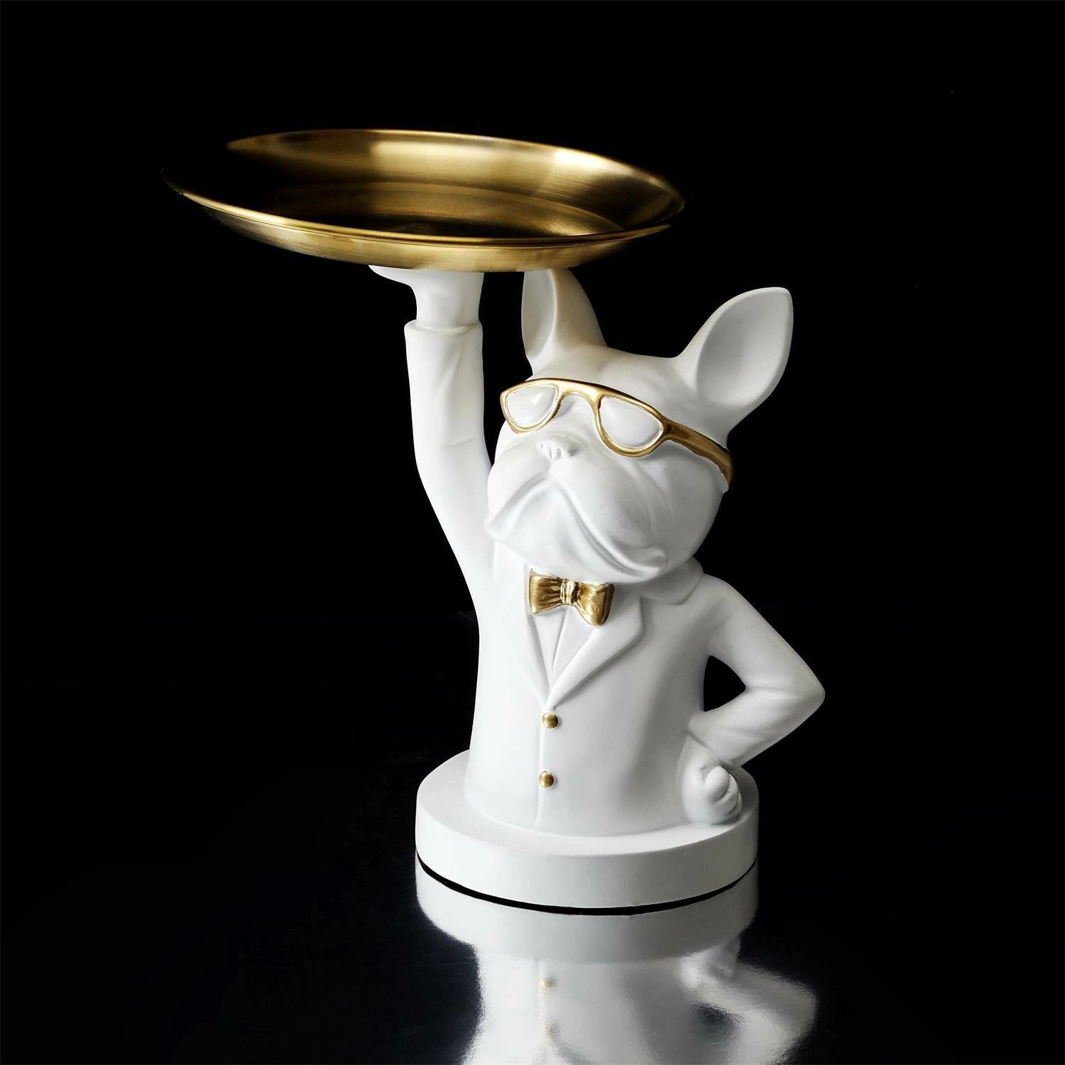 Organizer Buldog to coś dla fanów oryginalnych i niepowtarzalnych dodatków. A może uwielbiasz zwierzęta, a słodkie buldożki mają specjalne miejsce w Twoim sercu? Ceramiczny organizer pozwoli na przechowywanie podręcznych drobiazgów, dla których nigdy nie mogłeś znaleźć odpowiedniego miejsca. Dzięki złotej tacy zmieszczą się na nim takie rzeczy jak klucze, biżuteria lub inne drobnostki. Ceramiczny organizer ze złotymi dodatkami sprawdzi się w aranżacjach w stylu glamour i nowoczesnym. To świetny pomysł na dekoracje przestrzeni i uporządkowanie jej. Przechodząc obok tej ozdoby, nie sposób powstrzymać uśmiech na twarzy!