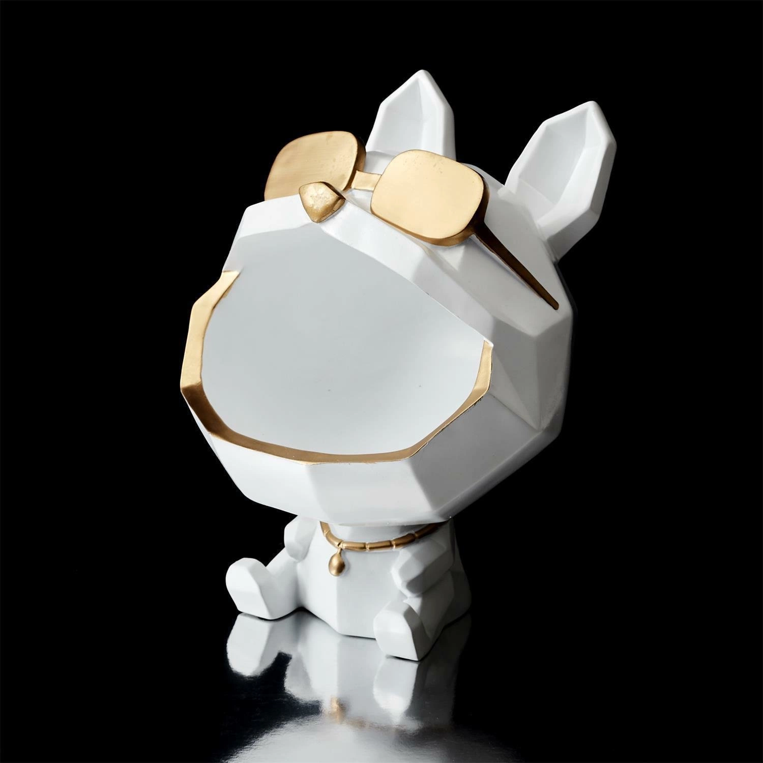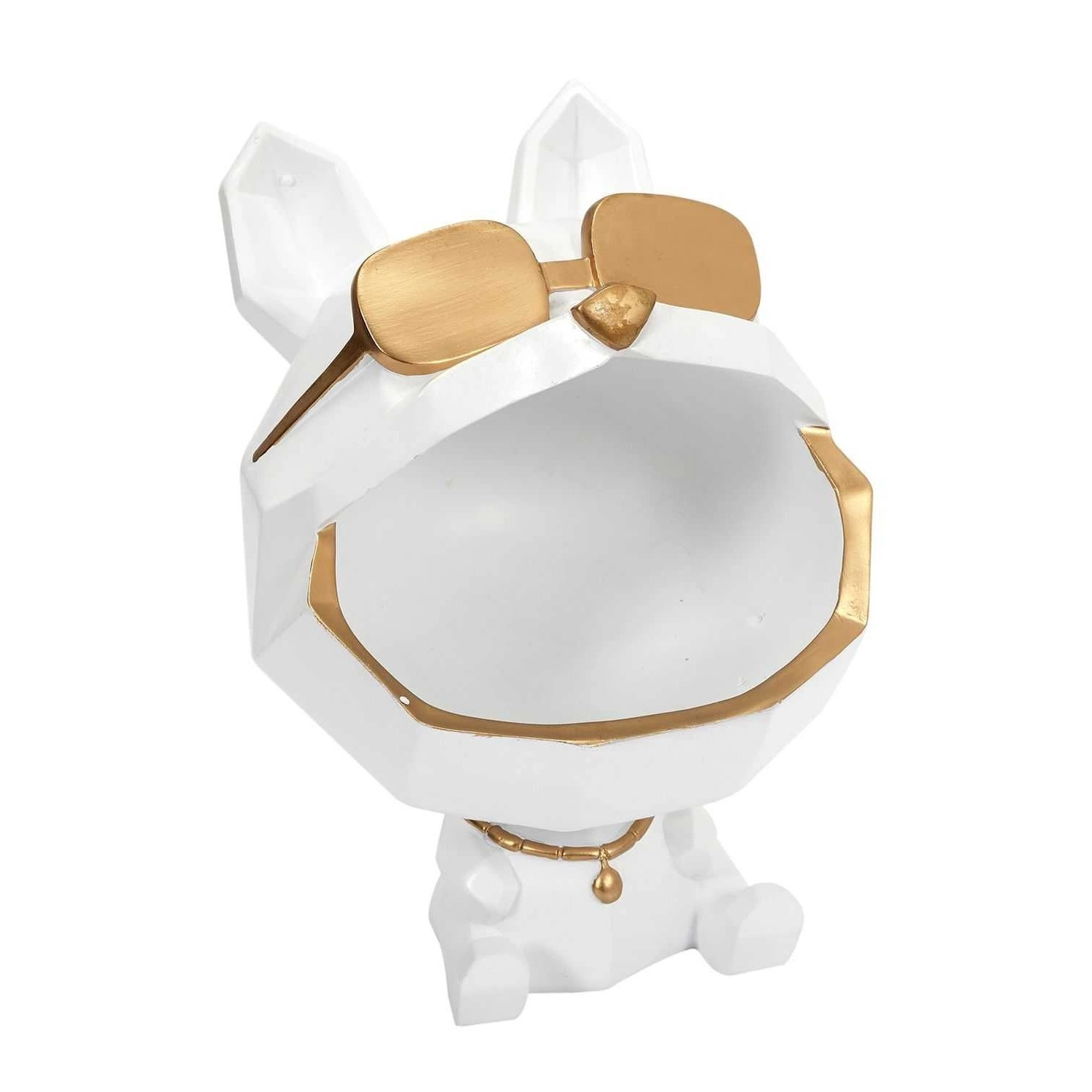 Figurka pies w stylu glamour to propozycja dla osób ceniących oryginalne dodatki i dbałość o każdy detal. Błyszczące wykończenie oraz kontrastujące złote elementy nadają jej wyjątkowy, luksusowy charakter. Dzięki temu organizer świetnie prezentuje się zarówno na komodzie w salonie, jak i na toaletce w sypialni czy konsoli w przedpokoju. To dekoracja, która podkreśla styl właściciela, a jednocześnie wnosi do pomieszczenia przyjazną atmosferę.
