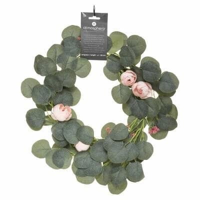 Sztuczna girlanda eukaliptusowa Atmosphera to nowoczesna dekoracja w stylu boho o długości 130 cm, wykonana z trwałego polietylenu i poliestru. Realistycznie odwzorowane liście w odcieniach zieleni doskonale imitują prawdziwy eukaliptus, tworząc efektowną ozdobę do salonu, jadalni czy kawiarni. Elastyczna konstrukcja pozwala na swobodne kształtowanie, dzięki czemu girlanda świetnie sprawdzi się zarówno jako zwisająca dekoracja, jak i oplatający element stołu czy półki.