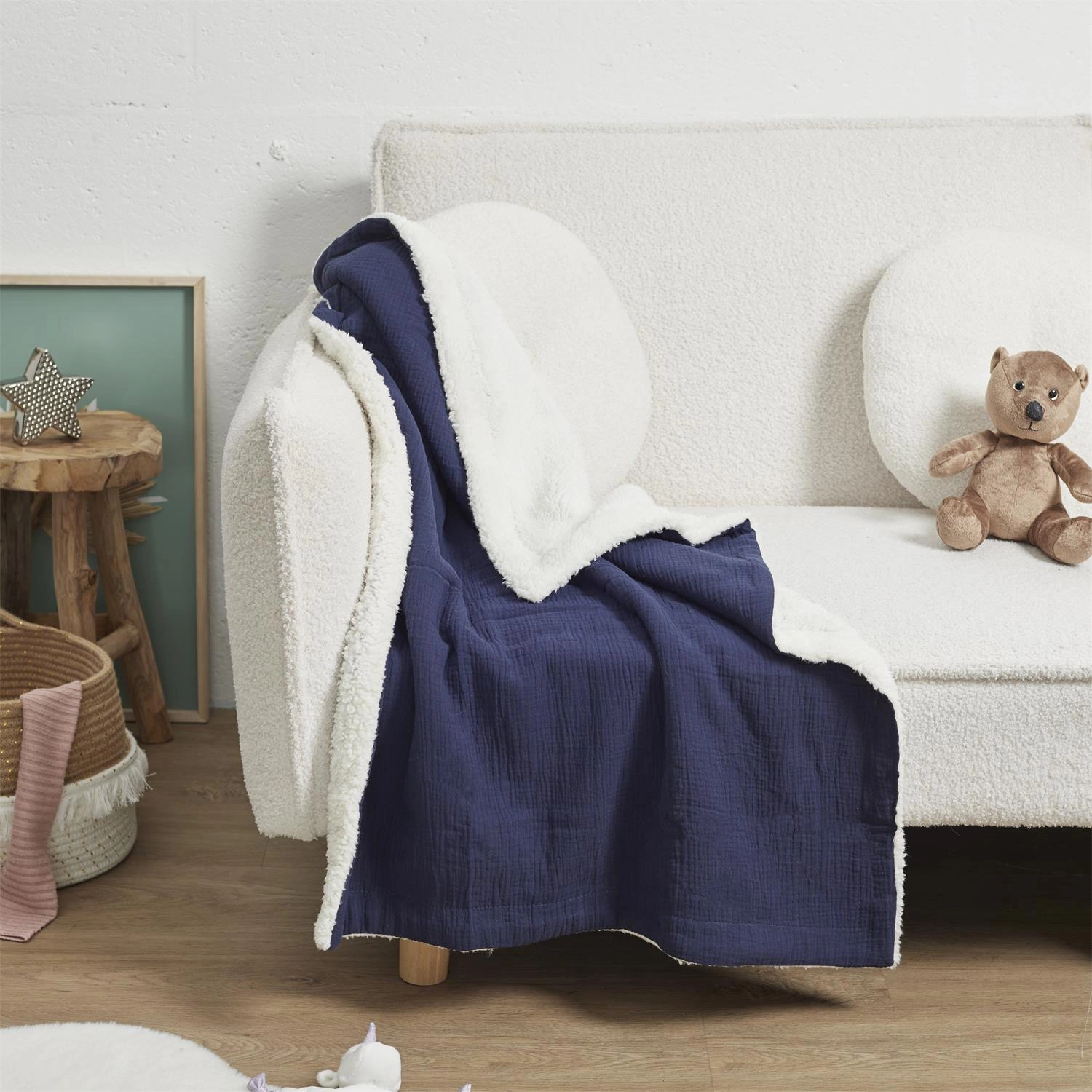 Czysty, błękitny kolor koca Intesi przywołuje na myśl spokój i harmonię, doskonale wpisując się zarówno w klasyczne, jak i delikatnie boho aranżacje dziecięcego pokoju. Kocyk niebieski to nie tylko praktyczny element wyposażenia – stanowi też estetyczne uzupełnienie wystroju, budując wrażenie ciepła i przytulności. Naturalny materiał podkreśla troskę o zdrowie i wygodę dziecka.
