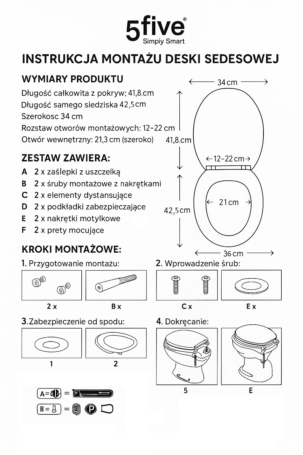 - Owalny, uniwersalny kształt – pasuje do większości misek WC