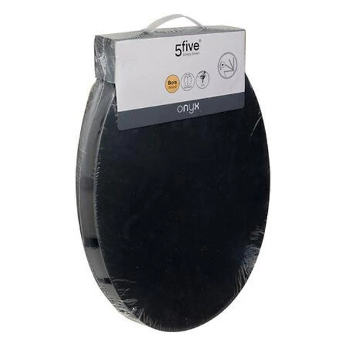 Deska sedesowa Onyx marki 5five simply smart to nowoczesne rozwiązanie do łazienki, łączące elegancki czarny kolor z funkcjonalnością na najwyższym poziomie. Wykonana z wytrzymałego duroplastu oraz płyty MDF, prezentuje się wyjątkowo stylowo, a zaawansowany mechanizm wolnoopadający zapewnia codzienny komfort użytkowania. Szerokość 37,5 cm i głębokość 49,9 cm doskonale sprawdzają się w większości standardowych misek WC, a uniwersalny kształt podkreśla jej wszechstronność.