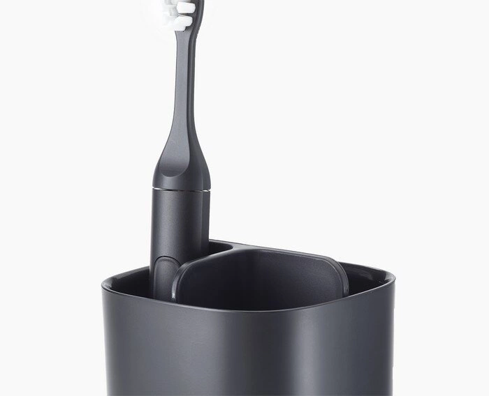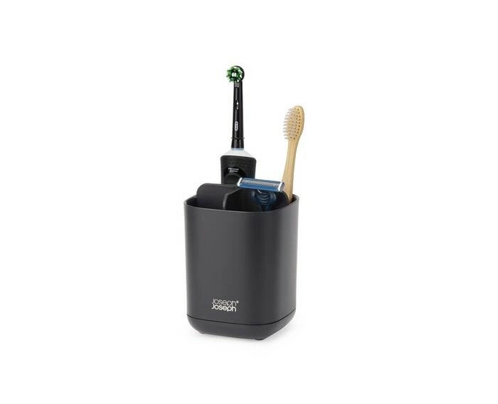Joseph Joseph EasyStore to organizer na szczoteczki, który pozwoli Ci w łatwy sposób uporządkować przestrzeń wokół umywalki. Dzięki kilku przegródkom możesz wygodnie oddzielić szczoteczki manualne, elektryczne oraz tubkę pasty. Czarny kolor i prostokątny kształt świetnie wpisują się w wystrój nowoczesnej łazienki, dodając jej elegancji oraz charakteru. Odporne na codzienne użytkowanie tworzywo sztuczne gwarantuje trwałość i estetyczny wygląd przez długi czas.