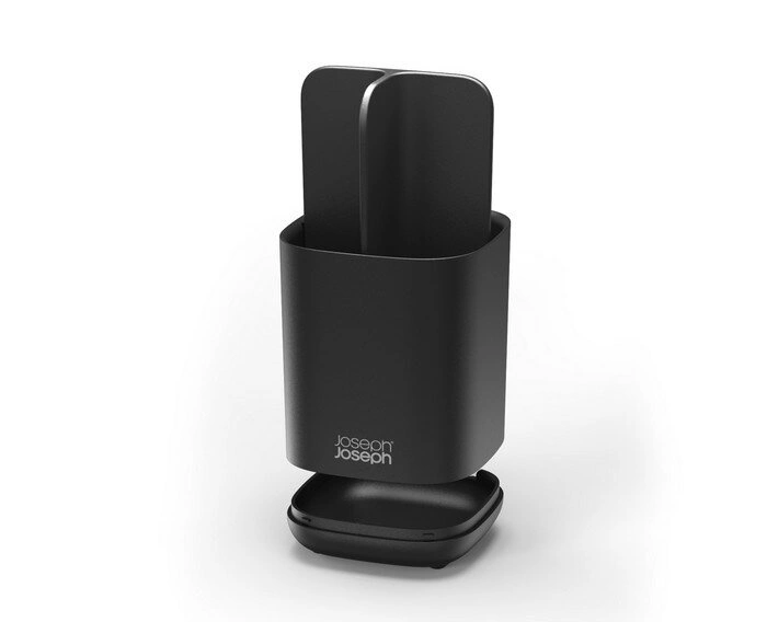 Organizer na szczoteczki do zębów i pastę Joseph Joseph EasyStore w kolorze czarnym to nowoczesny pojemnik łazienkowy, który łączy minimalistyczny styl z funkcjonalnością. Dzięki przemyślanej konstrukcji z trwałego tworzywa sztucznego i kompaktowym wymiarom 12,7 × 9 × 9 cm, doskonale sprawdzi się jako praktyczny kubek na szczoteczki do zębów oraz pastę, pomagając utrzymać porządek na umywalce.