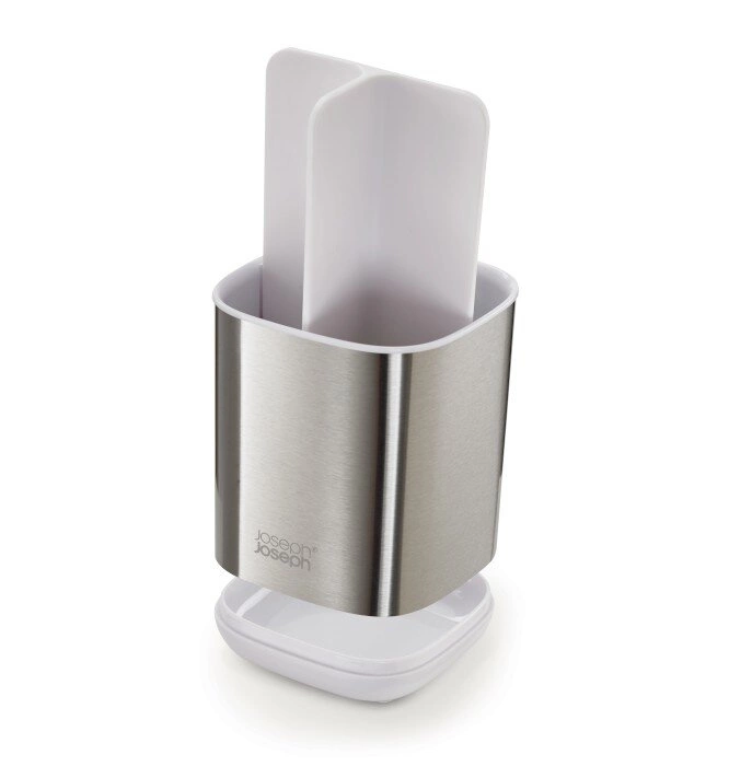 Joseph Joseph EasyStore Steel pojemnik na szczoteczki do zębów to nowoczesny, biały organizer łazienkowy wykonany z trwałej stali nierdzewnej i wysokiej jakości tworzywa. Kompaktowy rozmiar (12,7 cm wysokości, 8,4 cm szerokości i głębokości) sprawia, że doskonale pasuje na każdą umywalkę, pozwalając na wygodne przechowywanie szczoteczek do zębów oraz pasty. Uniwersalny design i neutralna kolorystyka sprawiają, że pojemnik stanowi elegancki i praktyczny dodatek do każdej nowoczesnej łazienki.