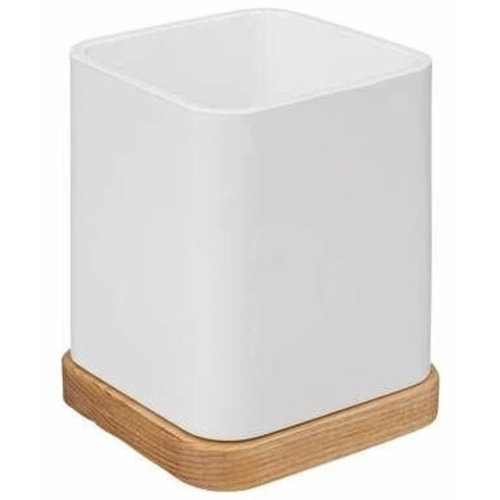 Kubek na szczoteczki do zębów Natureo marki 5five simply smart to połączenie ponadczasowej bieli z naturalnym drewnem jesionowym, stworzone z myślą o funkcjonalnej i estetycznej łazience. Wysoki na 10 cm pojemnik jest wykonany z trwałego tworzywa oraz drewna, zachwycając minimalistycznym, skandynawskim designem. Idealny do przechowywania szczoteczek do zębów i innych akcesoriów łazienkowych, zapewnia porządek oraz subtelny akcent natury w codziennym otoczeniu.