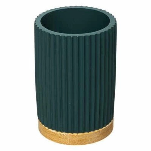 Modern kubek na szczoteczki do zębów marki 5five simply smart to nowoczesny, bambusowy pojemnik łazienkowy w głębokim zielonym kolorze. Łączy trwałość drewna bambusowego z funkcjonalnością żywicy i eleganckim designem, idealnie wpisując się w styl nowoczesnych łazienek. Kompaktowe wymiary 11 cm wysokości i 7,2 cm szerokości sprawiają, że kubek doskonale zmieści się na każdym blacie lub półce, utrzymując szczoteczki do zębów oraz pastę zawsze w zasięgu ręki.
