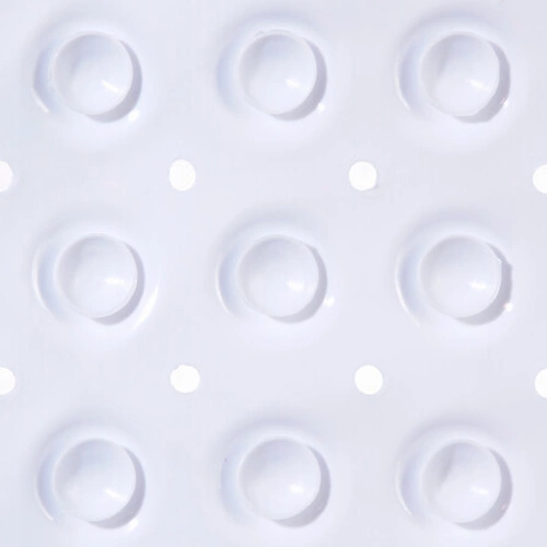 Minimalistyczny, biały kolor maty doskonale wpisuje się w aktualne trendy aranżacji wnętrz, czyniąc ją dyskretnym, a zarazem stylowym elementem wyposażenia łazienki. Kwadratowa forma ułatwia dopasowanie do większości kabin prysznicowych, a niewielka grubość – jedynie 0,1 cm – sprawia, że mata jest niemal niewidoczna, nie zaburzając estetyki podłogi. Dzięki temu łazienka zyskuje nie tylko na bezpieczeństwie, ale również na elegancji.
