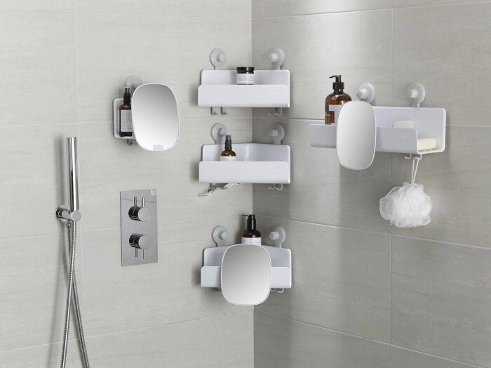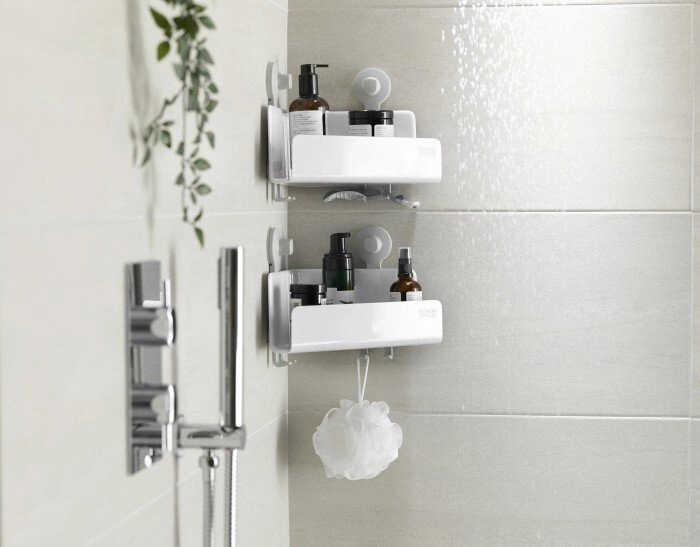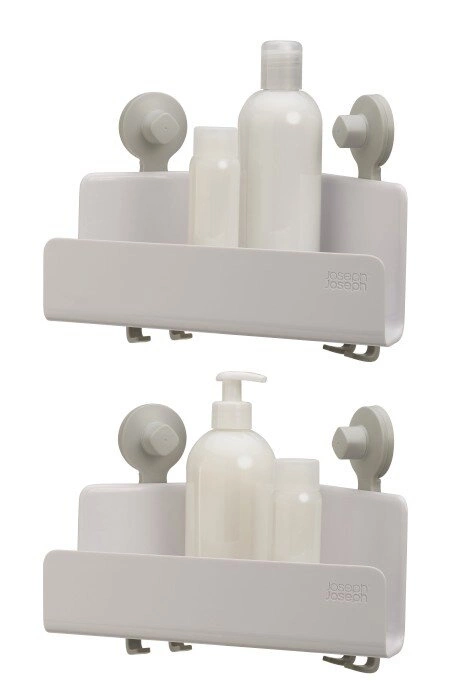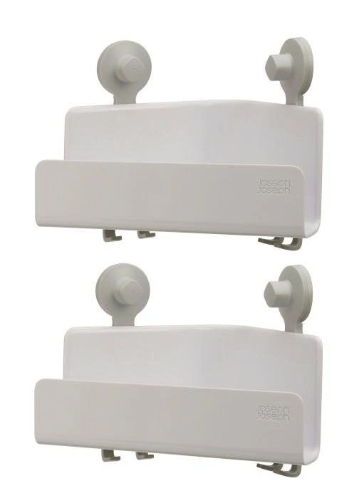 Półka łazienkowa narożna EasyStore marki Joseph Joseph to praktyczne rozwiązanie do przechowywania kosmetyków i akcesoriów w kabinie prysznicowej lub w okolicy wanny. Wykonana z wytrzymałego tworzywa sztucznego w nowoczesnej kolorystyce bieli i szarości, zapewnia nie tylko trwałość, ale i stylowe dopełnienie każdej łazienki. Dzięki mocowaniu na przyssawki oraz zintegrowanym haczykom, półka pozwala zachować porządek bez konieczności wiercenia w ścianach.