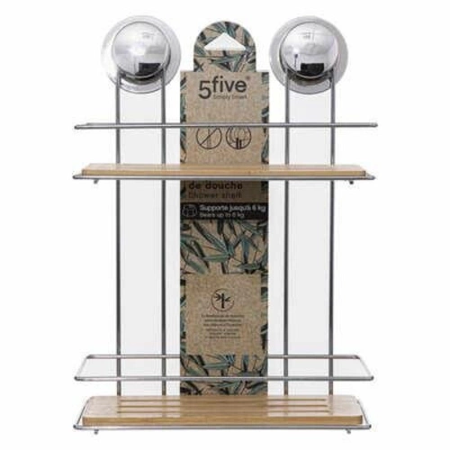 Półka łazienkowa wisząca bez wiercenia Suction 2-poziomowa bambusowa 5five simply smart to praktyczne i stylowe rozwiązanie dla każdej łazienki. Wykonana z naturalnego drewna bambusowego i metalu w kolorze srebrnym, oferuje dwie pojemne półki oraz łatwy montaż na przyssawki – bez konieczności wiercenia ścian. Dzięki wysokości 36,5 cm, szerokości 25 cm i głębokości 13,2 cm zapewnia wygodne przechowywanie najpotrzebniejszych kosmetyków pod prysznicem lub nad wanną.
