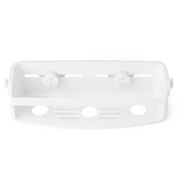 Umbra FLEX biała półka łazienkowa wisząca pod prysznic bez wiercenia to praktyczne rozwiązanie dla osób ceniących wygodę i nowoczesny minimalizm. Wykonana z trwałego tworzywa sztucznego w białym kolorze, oferuje wygodny i szybki montaż dzięki innowacyjnemu systemowi Gel-Lock. Kompaktowe wymiary – 33 cm szerokości, 11 cm wysokości i 9 cm głębokości – czynią ją idealnym wyborem zarówno pod prysznic, jak i nad wannę czy do strefy umywalki.