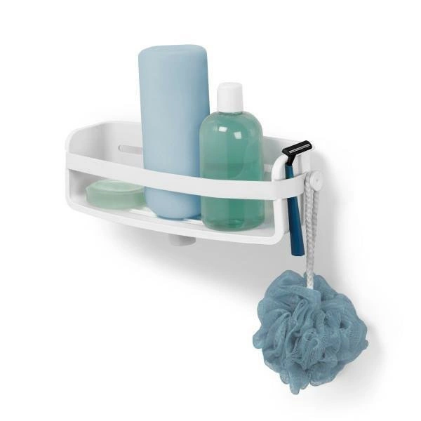 Umbra FLEX biała półka łazienkowa narożna doskonale sprawdzi się jako półka pod prysznic bez wiercenia, zapewniając wygodne przechowywanie kosmetyków i akcesoriów w zasięgu ręki. Jej uniwersalność pozwala na montaż zarówno w kabinie prysznicowej, nad wanną, jak i przy umywalce. Nowoczesne wzornictwo i łatwość montażu czynią ją praktycznym wyborem do każdej łazienki, niezależnie od metrażu czy układu.