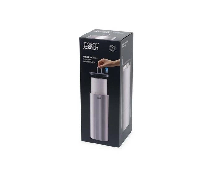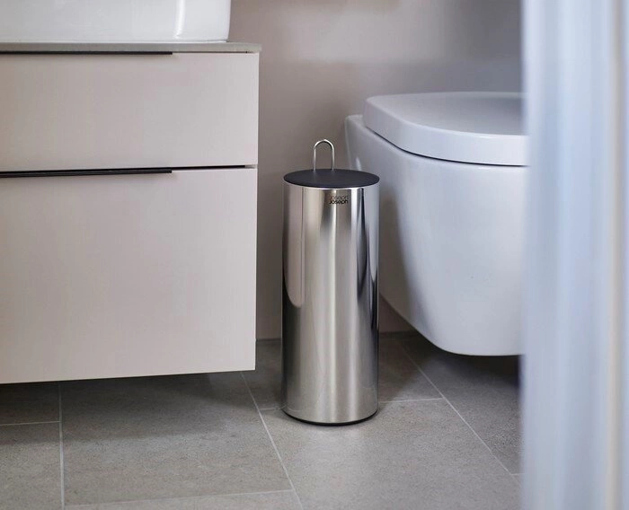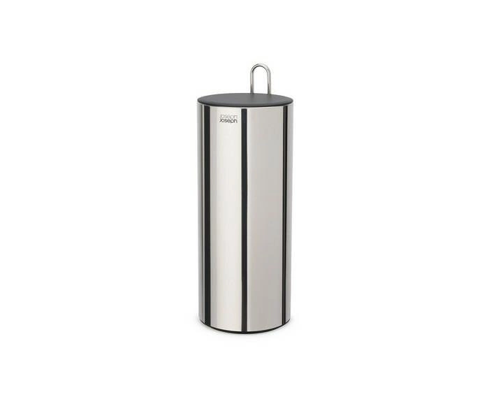Stojak na papier toaletowy Joseph Joseph Easystore Luxe to propozycja dla osób ceniących nowoczesny styl oraz funkcjonalność w łazience. Wykonany ze srebrnej stali nierdzewnej, łączy trwałość z eleganckim wyglądem, a kompaktowe wymiary – 41,4 cm wysokości i 15,6 cm szerokości – sprawiają, że doskonale sprawdzi się zarówno w większych, jak i mniejszych przestrzeniach. Cylindryczna forma oraz wytrzymała obudowa gwarantują stabilność i wygodę podczas codziennego użytkowania.
