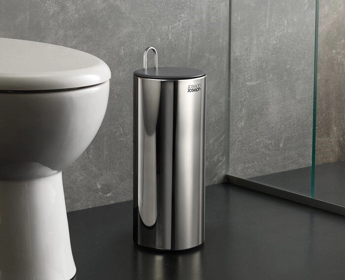 Minimalistyczny design i połyskujące, srebrne wykończenie sprawiają, że stojak na papier toaletowy Joseph Joseph wprowadza do wnętrza łazienki nutę luksusu. Chromowana stal nierdzewna nie tylko prezentuje się wyjątkowo stylowo, ale także jest odporna na korozję, co zapewnia jej doskonały wygląd przez długi czas. Stojak łazienkowy wolnostojący nie wymaga montażu do ściany, dzięki czemu możesz go łatwo przestawić w dowolne miejsce – bez wiercenia i ingerencji w płytki.