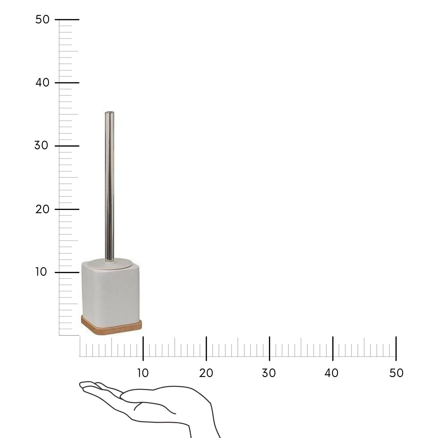 Szczotka do WC Natureo marki 5five simply smart to harmonijne połączenie białej żywicy oraz naturalnego drewna jesionowego, które wprowadza do łazienki nutę nowoczesnej elegancji. Ten praktyczny i stylowy dodatek o wysokości 35,5 cm i kompaktowych wymiarach 9,1 × 9,1 cm sprawdzi się zarówno w dużych, jak i mniejszych łazienkach. Szczotka do toalety Natureo nie tylko skutecznie zadba o czystość Twojej ubikacji, ale także stanie się wyrazistym elementem aranżacji wnętrza.